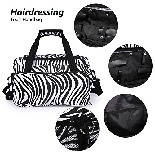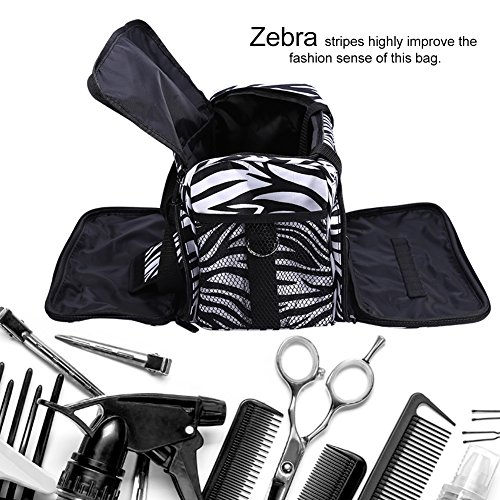 El bolso tiene un compartimento principal que puede acomodar grandes herramientas para el cabello, como un secador de pelo, una plancha o una máquina de cortar, mientras que varios bolsillos específicamente diseñados para herramientas pequeñas como tijeras, horquillas y peines. Con asa y correa para el hombro, puede usarlo como bolso o bandolera. cebra mejorar el significado de este bolso de moda.