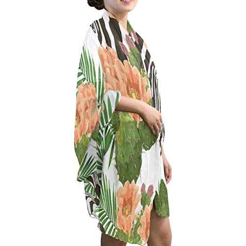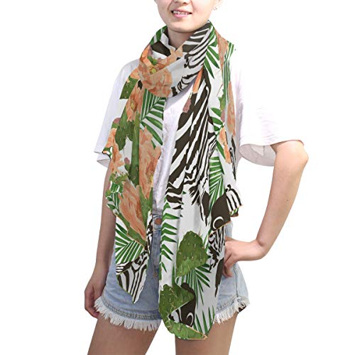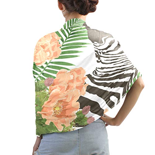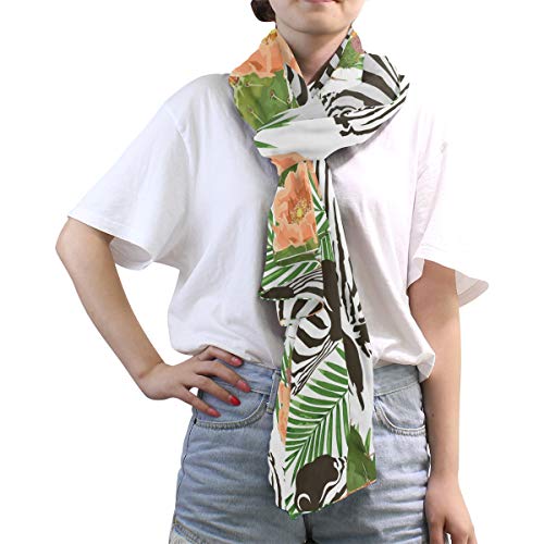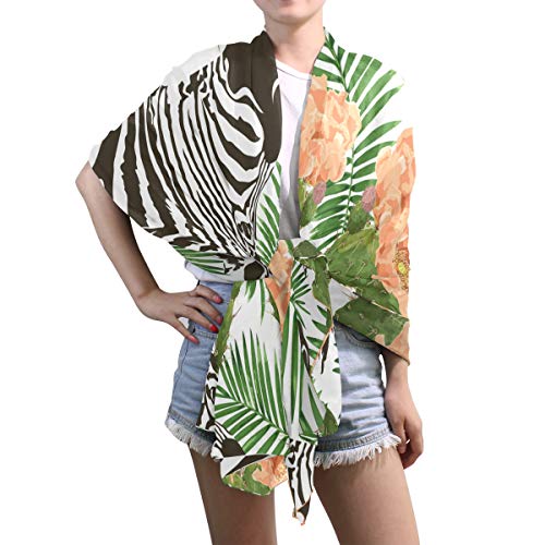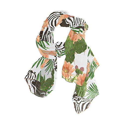 linomo – Bufanda de gasa para mujer, tamaño grande, diseño de flor de cactus y cebra
