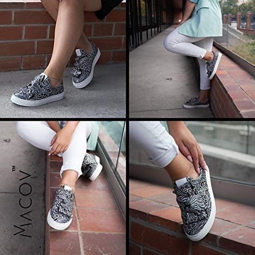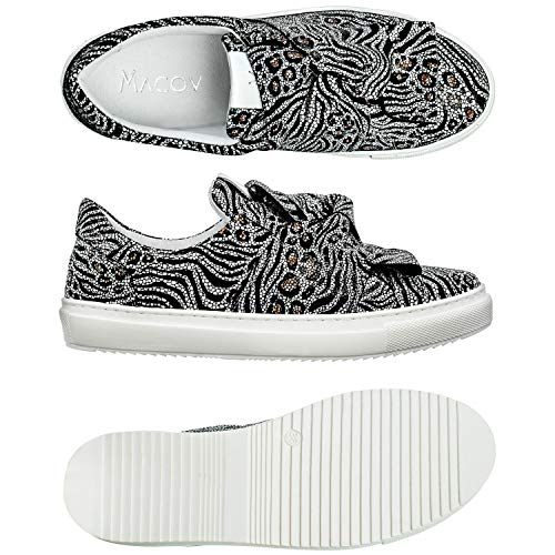 Macov – Zapatillas de Moda de Cuero para Mujer para Cada ocasión – Bow Sneakers – Patrón de Cebra