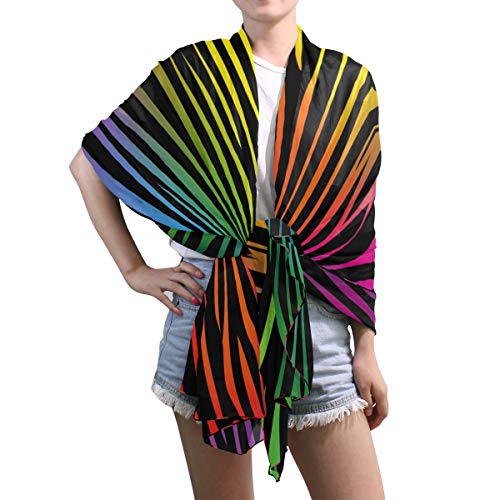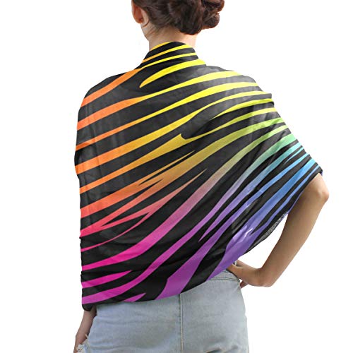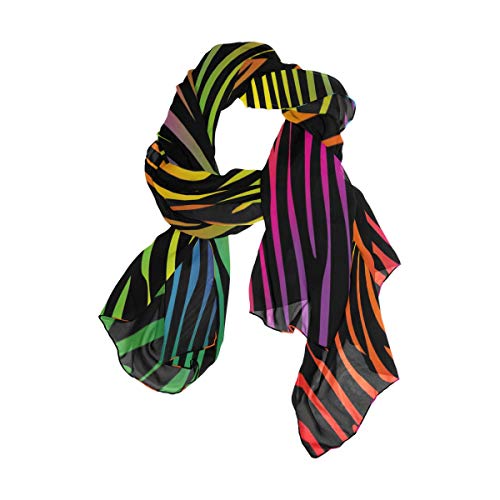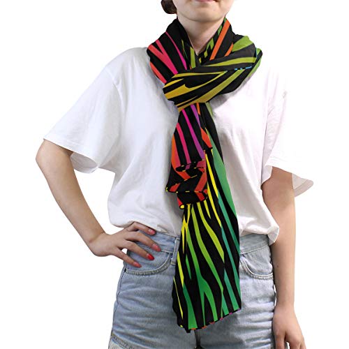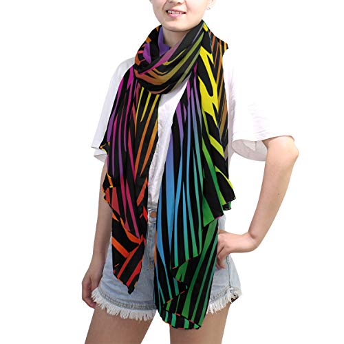 Mnsruu – Bufanda larga con estampado de cebra arcoíris