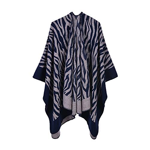 Mujeres Invierno Caliente Mantas Bufandas,Señoras Abrigo Cálido Chal Estampado De Cebra Azul Marino Suave Imitación…