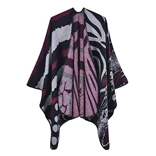 Mujeres Invierno Caliente Mantas Bufandas,Tejer Suaves Abrigos Chal Estampado De Rayas De Cebra Rojo Burdeos De Gran…