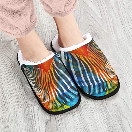 PUXUQU Zapatillas de casa para mujer, con estampado de cebra, coloridas, para casa, para dormitorio, para mujeres…