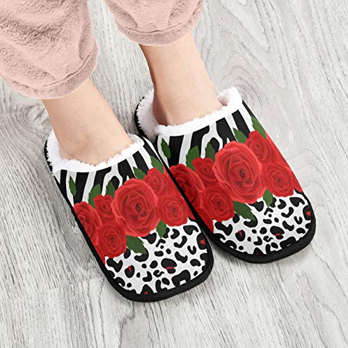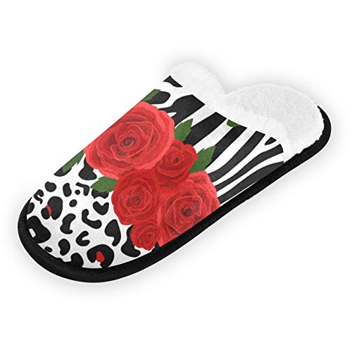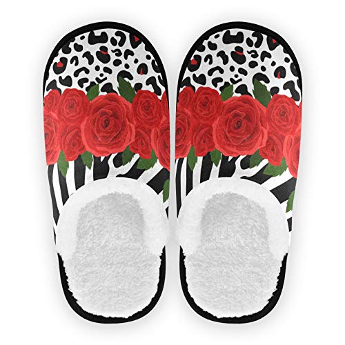PUXUQU Zapatillas de casa para mujer con estampado de cebra de leopardo, zapatos para dormitorio, zapatillas para…