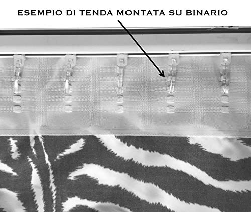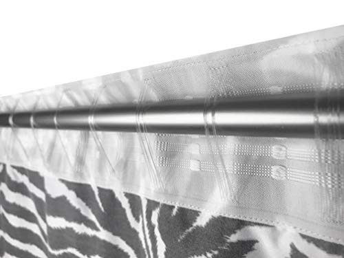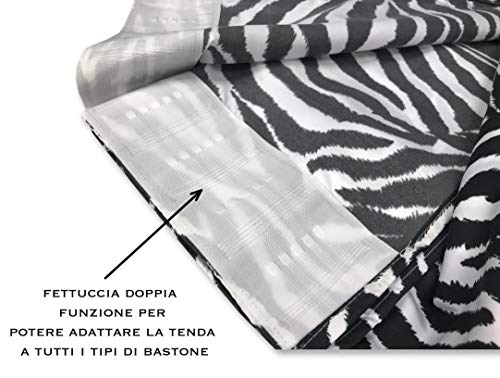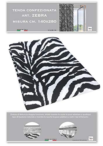 Cortina «cebrata» confeccionada ya lista para su uso, fabricada en tejido de poliéster con tacto de piel de melocotón muy suave que no se arruga.