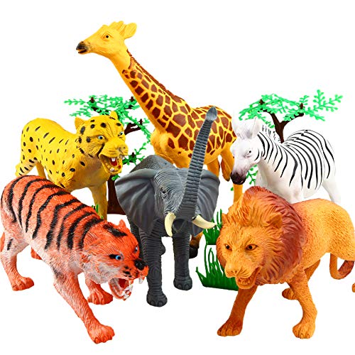➢ ¡Menudos animales de juguete tan increíbles! Incluye: elefante, jirafa, tigre, león, leopardo, cebra, 2 árboles y 4 hierbas. La jirafa mide 17,8 de largo x 21,6 cm de alto.