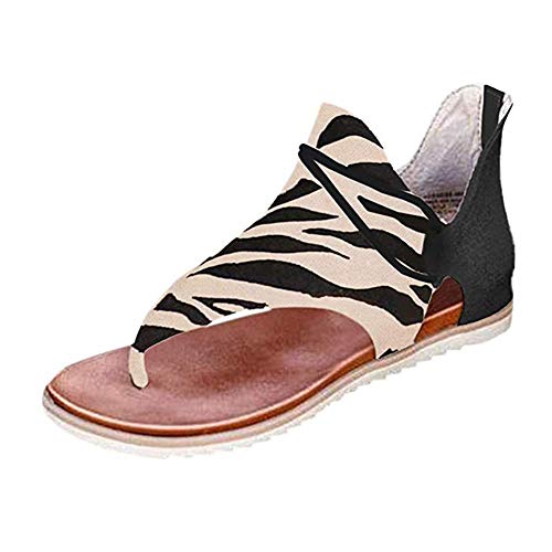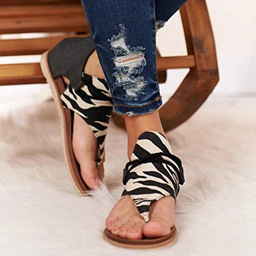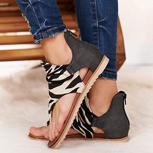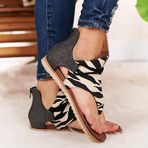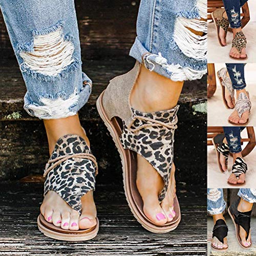 Sandalias Planas Mujer Casual Leopardo Sandalias Zapatos de Verano Sandalias Mujeres Peep Toe Encaje up Impresión Clip Toe Sandalias Planas Playa